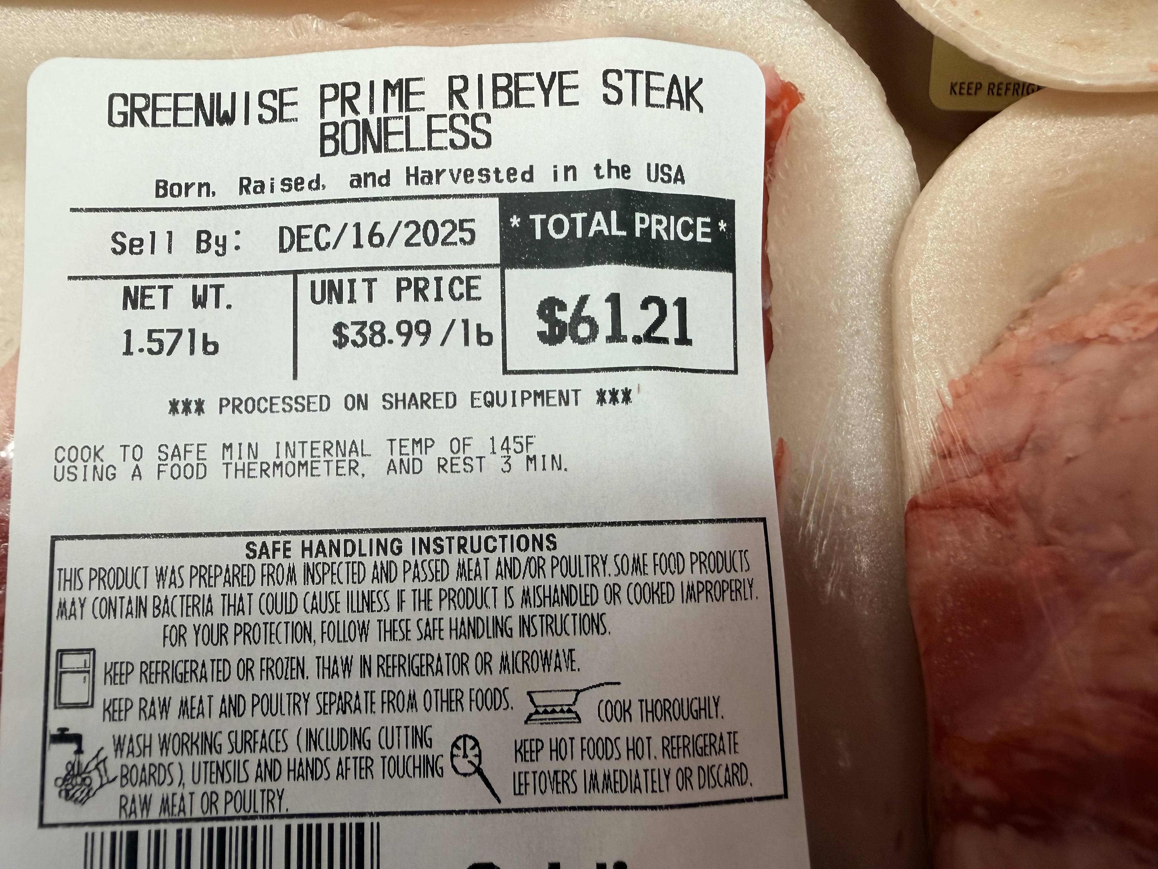 | Ribeye Steak @ Publix Tequesta, FL December 10, 2025 |