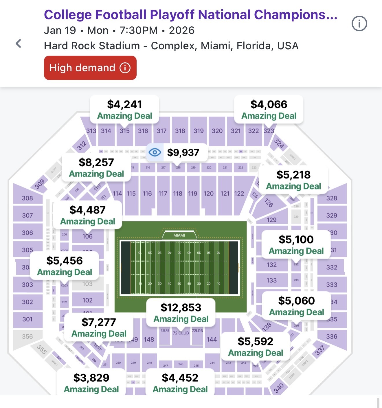 3. I considered attending the college football championship game tonight. It is about two hours away in Miami. I was serious enough to look for tickets. Silly me, I actually thought I would find some reasonable tickets for the game. I was shocked by the prices! I went onto two resale sites and found tickets ranging from about $4K to $18K per ticket. Ugh. I posted the seat maps from two of the popular resale ticket sites. Who really pays that much for a sporting event? I mean, really?